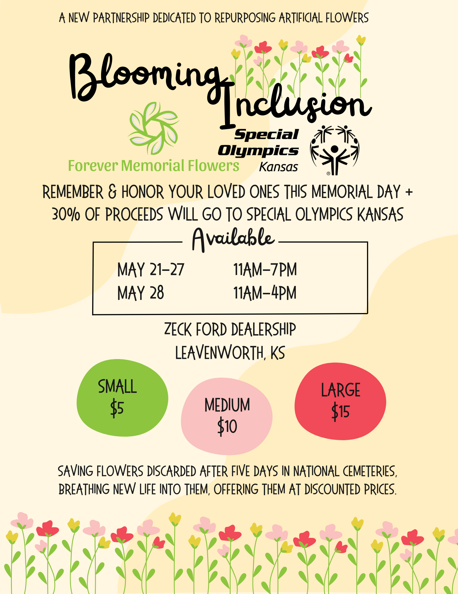 Blooming Inlcusion! Forever Memorial Flowers and Special Olympics Kansas are excited to announce our new partnership entitled Blooming Inclusion, dedicated to repurposing artificial flowers for a meaningful cause. The partnership will kick off at Zeck Ford Dealership in Leavenworth on May 21 and go to May 27, operating from 11 a.m. to 7 p.m. daily. […]